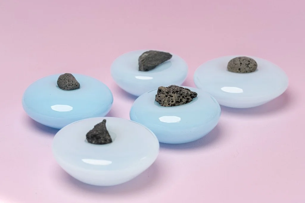 Basalt Collection - Handmade, One of a Kind blown glass sculptures on hand selected stones. Available at select stores and galleries in Iceland and through Studio C